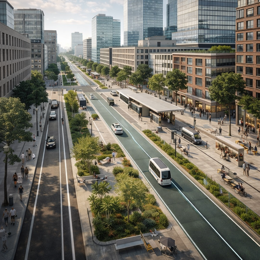 Redesigned urban elements considering citywide adoption of autonomous vehicle, and suggested a novel ‘patchwork’ concept that merges the design strategies into a connected system.